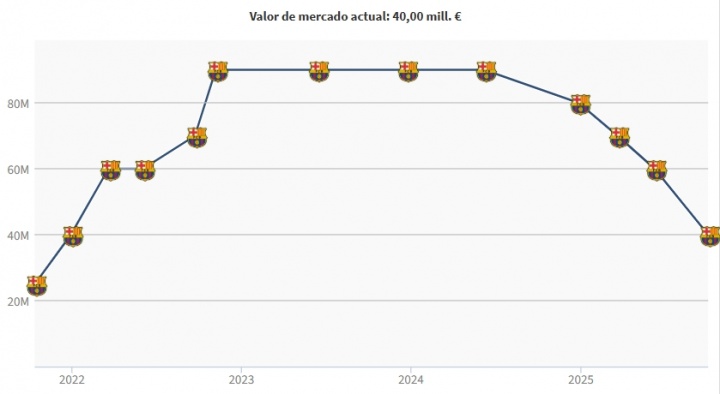 Hôm nay, Đức đã chuyển để cập nhật giá trị của người chơi La Liga và giá trị của Garvey đã giảm 20 triệu euro một lần nữa, từ 60 triệu euro xuống còn 40 triệu euro.