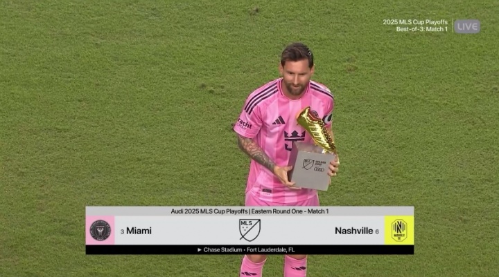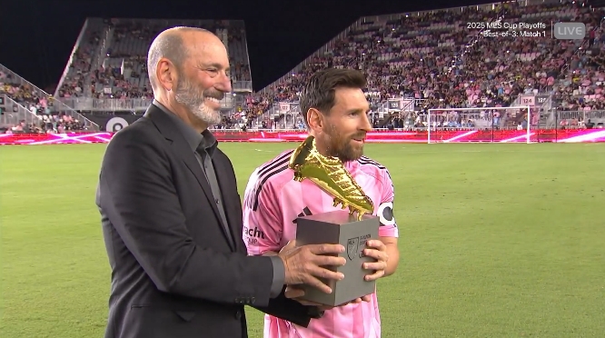 Nhận một chiếc giày vàng đầu tiên! Trước vòng play-off đầu tiên, Messi nhận cúp Chiếc giày vàng mùa giải thường lệ